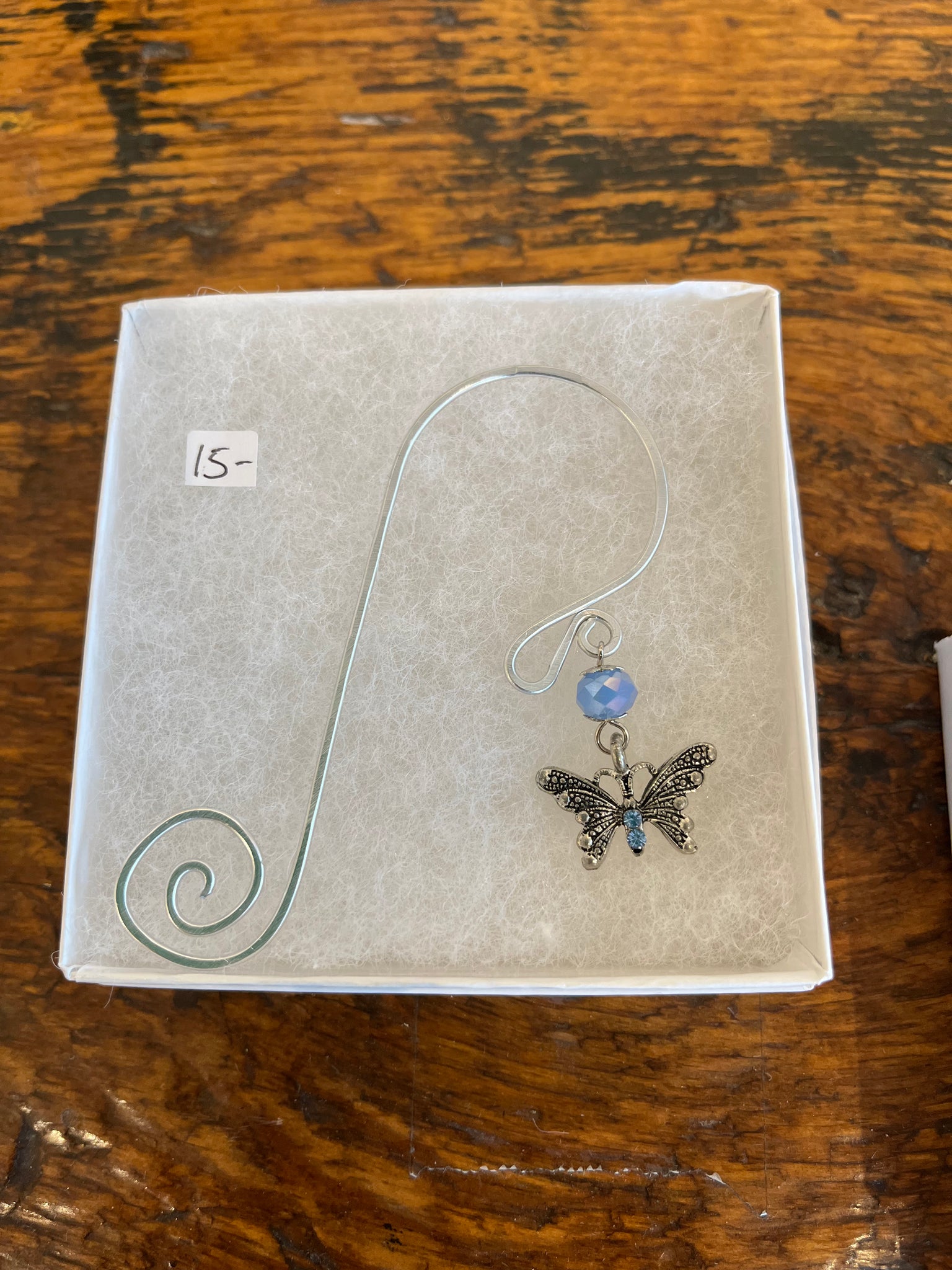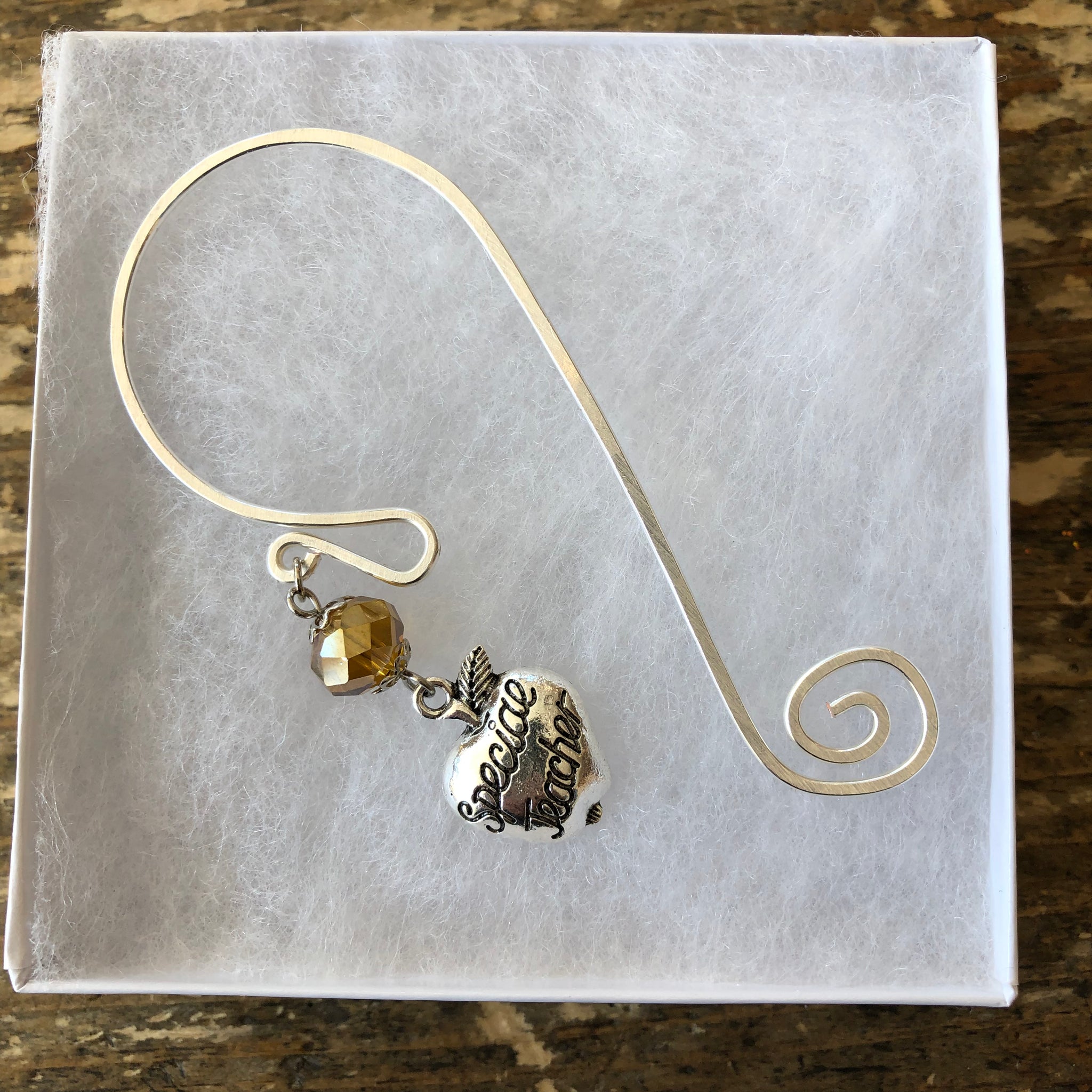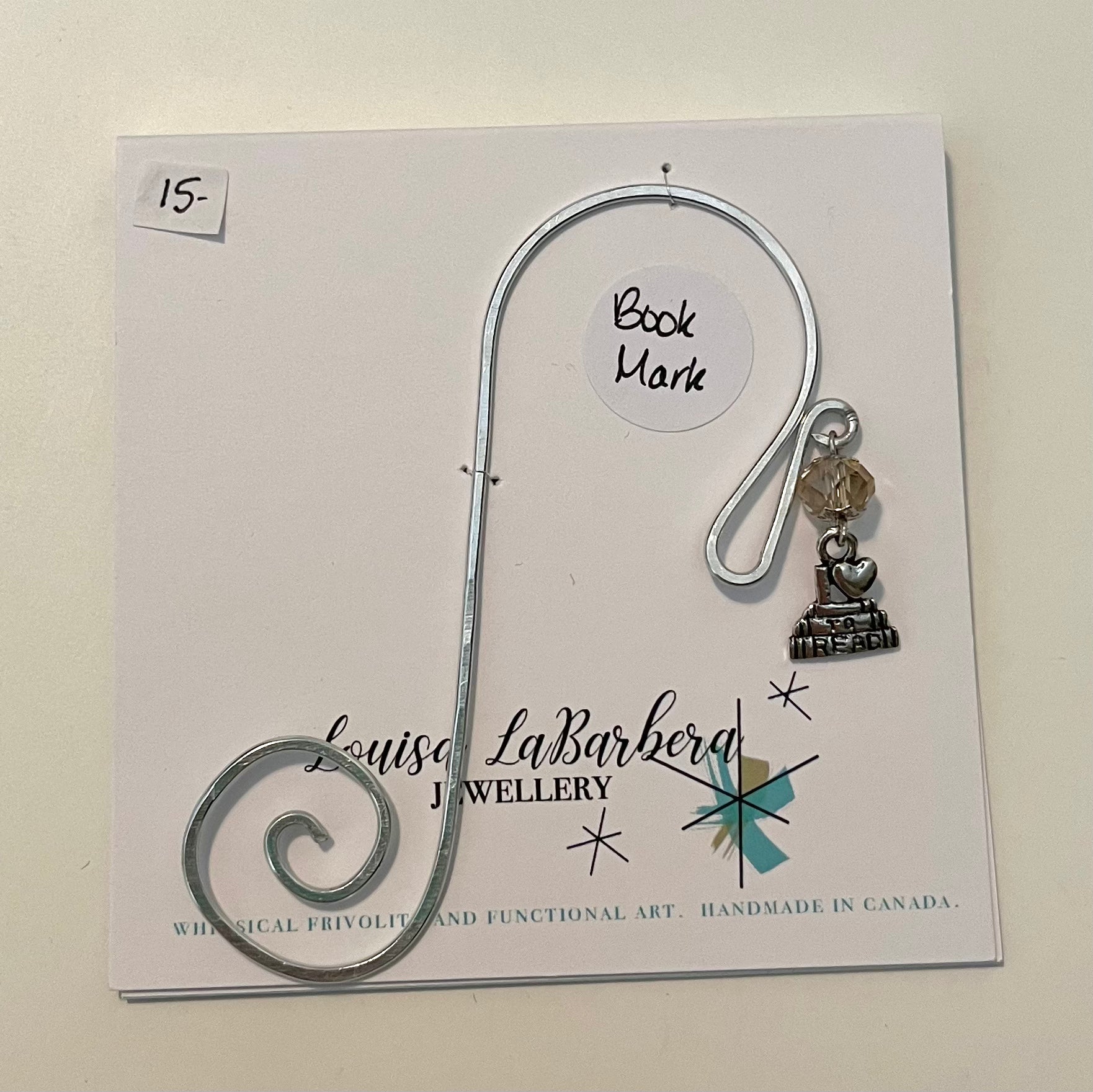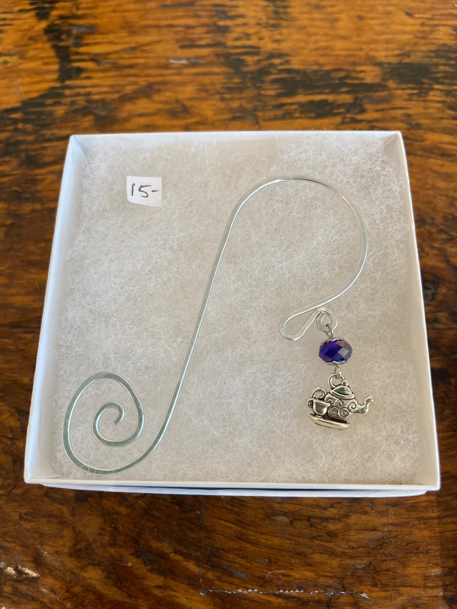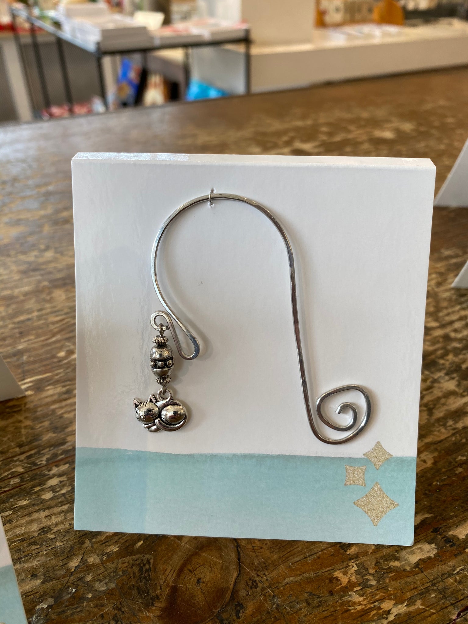 Hand formed and hammered aluminum wire bookmarks with cute themed charms!