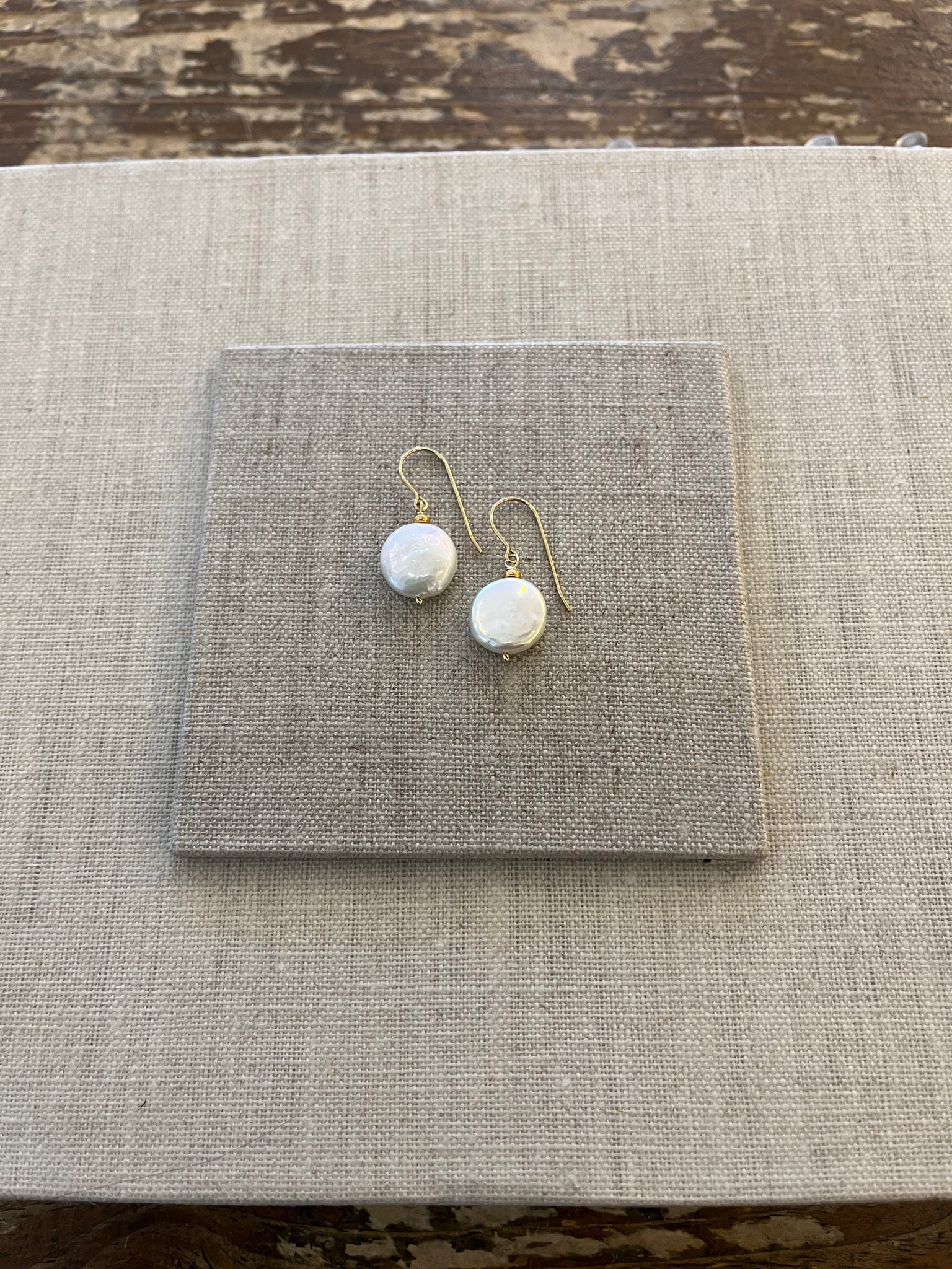 A freshwater coin pearl with 14 karat gold filled or sterling silver hooks